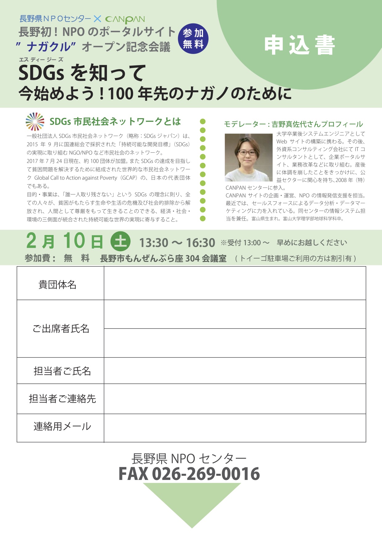 2 次のチラシ裏面の参加申込書に必要事項を記載の上、県NPOセンターへFAXまたはメール送信