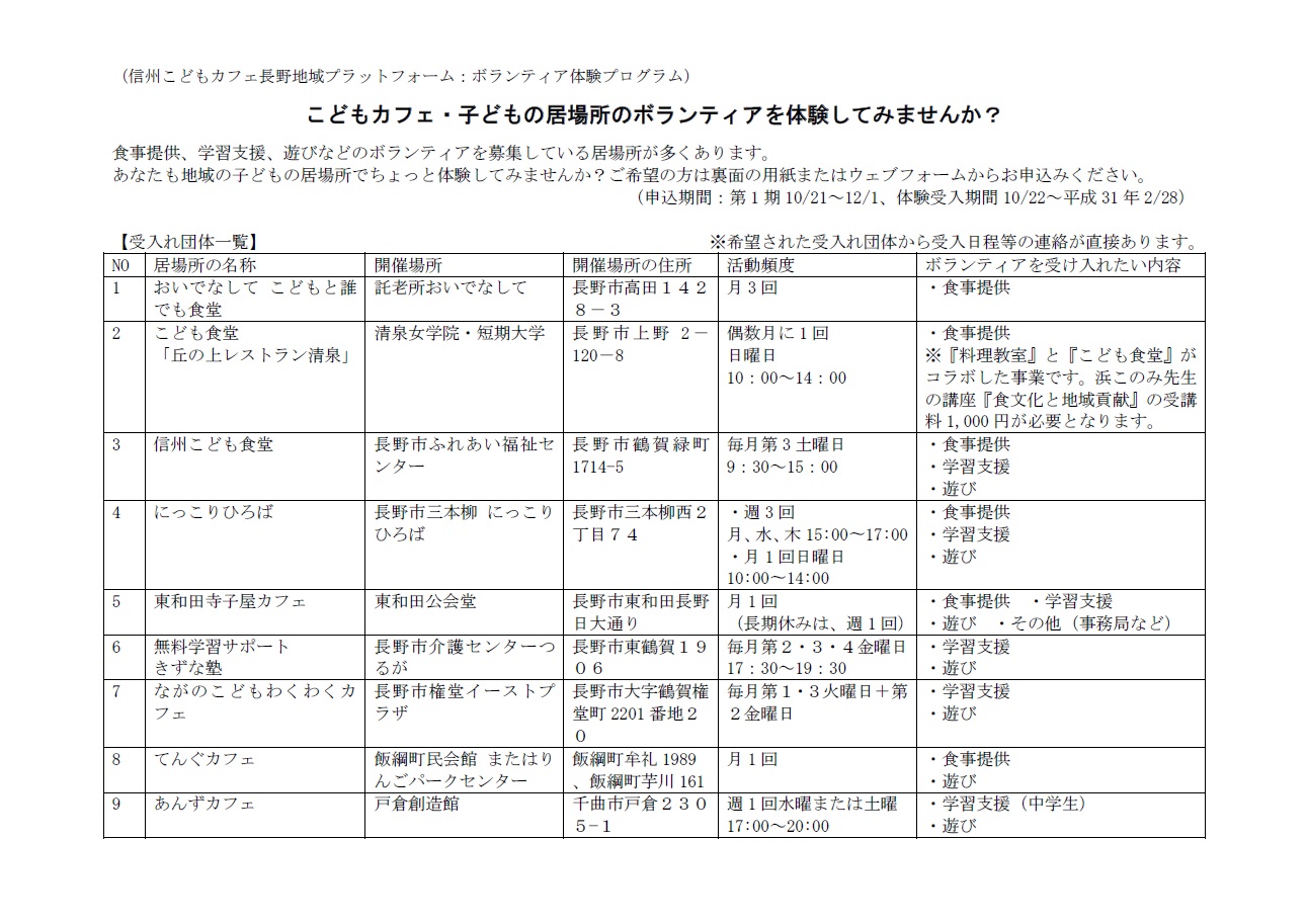 ~信州こどもカフェ長野地域プラットフォーム:ボランティア体験プログラム~