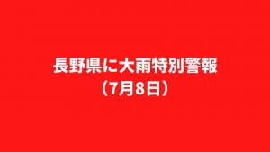 7月8日午前6時43分に 長野県中南信に大雨特別警報が発令されました。また、7月3日からの大雨により、県内14市町村に災害救助法が適用されました。