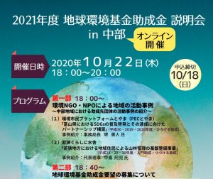 • 【助成金情報】地球環境基金「2021年度助成金説明会in中部」