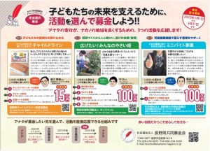 新年あけましておめでとうございます 2023 1/05 未分類 2023-01-05 昨年末は「学びの拠点Fourth Place」のクラウドファンディングに多くのご支援をお寄せくださり、誠にありがとうございました。 おかげさまで目標を上回る300万円以上のご寄付と、励ましのメッセージなどを多数いただきました。 みなさまのご支援に感謝しつつ、若者が安心して過ごせる居場所・出会いとチャレンジの場、生きづらさを抱える人たちが少しでも希望を持てる社会、多様な人たちが参加・協働する地域、戦争のない平和な世界に向けて私たちができることを考え、全力で取り組んでまいります。 今後とも変わらぬご支援をよろしくお願いします。 特定非営利活動法人 長野県NPOセンター代表理事 山室秀俊 未分類 NPO 情報 新年あいさつ 長野 よかったらシェアしてね! URLをコピーしました! 【助成金情報】障害児・者(含む難病)に対する自立支援活動への助成募集 【募金受付】使途選択募金 ながの「地域課題解決チャレンジプロジェクト」 関連記事 【助成金情報】住⺠寄り添い型伴⾛⽀援の社会資源開発モデル事業委託先団体募集のご案内 2026-01-14 【催し案内】11月の信州は『うんこまみれ』!? 2025-11-04 【助成金情報】COSMOエコ基金 新規プロジェクト公募のご案内 2025-10-10 【助成金情報】環境再生保全機構・地球環境基金のご案内 2025-10-08 【参加募集】一人でも多すぎる~性暴力を許さず、明るい未来へ~ 2025-10-07 【参加募集】第55回長野県消費者大会のお知らせ 2025-10-07 【終了しました】親子で体感!SDGs「プラスチックと温暖化って関係あるの?」 2025-09-26 【当日のオンライン参加者の募集を終了】「ペット防災”はじめの一歩” ~熊本地震から学んだこと」 2025-09-19
