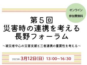 • 【催し案内】第5回災害時の連携を考える長野フォーラム~被災者中心の災害支援と三者連携の重要性を考える~