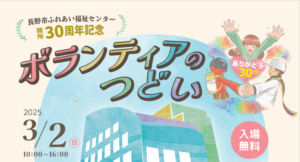 • 【参加募集】長野市ふれあい福祉センター開所30周年記念 ボランティアのつどい~30年の歩みを未来につなごう~