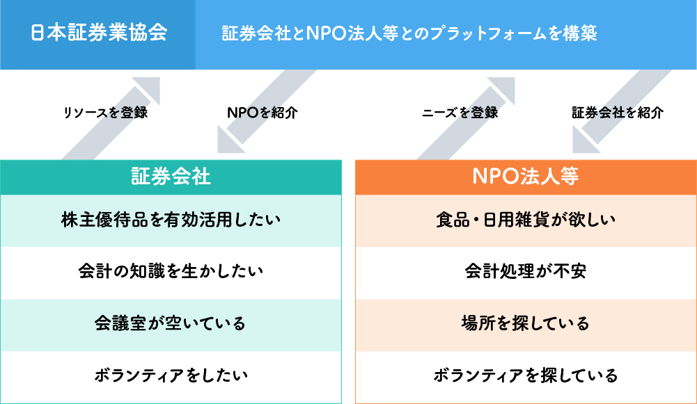我々証券業界では、少子高齢化社会における課題である子供の貧困問題解決に向けて、当事者意識を持って取り組むため、証券会社とNPO法人等を結ぶプラットフォームである「こどもサポート証券ネット」を構築することとし、2019年12月17日より、運営を開始いたしました。
