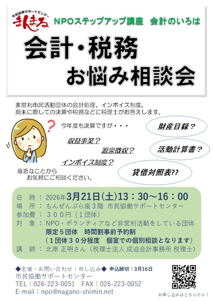 NPOやボランティアなど非営利活動をしている団体を対象に、会計処理や決算書類書作成などでの困りごと、期末に際しての税務、インボイス制度などへの質問に対して、専門の税理士がお答えします。