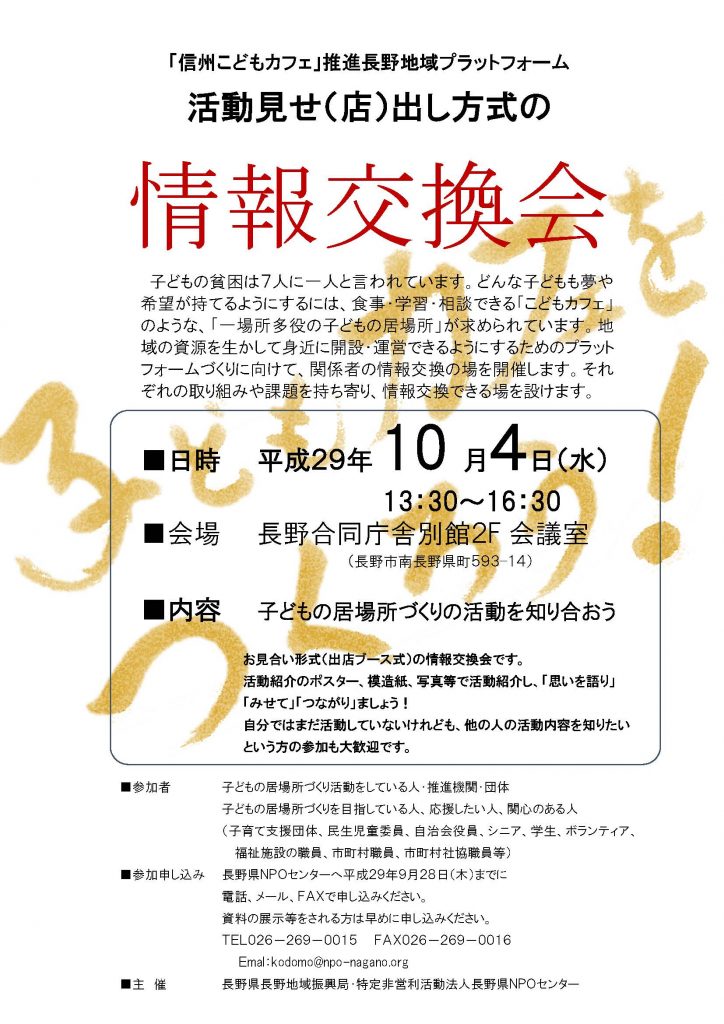 「信州こどもカフェ」推進長野地域プラットフォーム 情報交換会のご案内