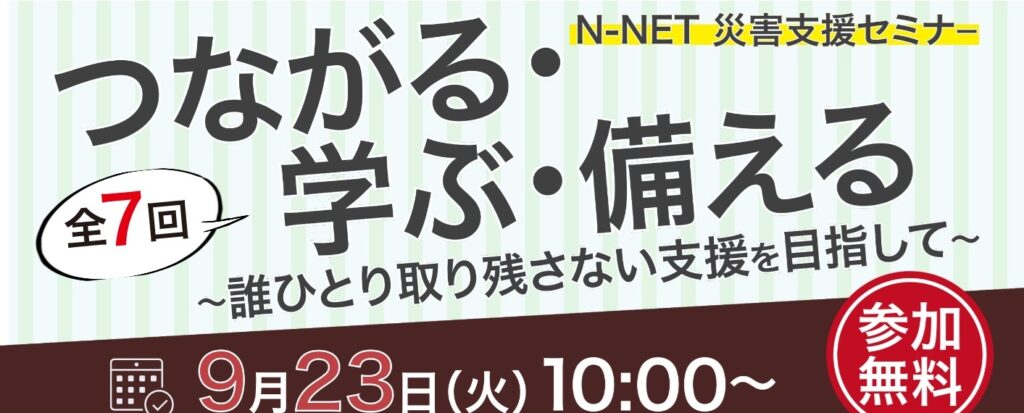 【参加募集】N-NET災害支援セミナー「つながる・学ぶ・備える」第2回テーマ「誰もが安心安全な避難生活をおくるために~ジェンダーと多様性の視点から災害時の課題を学ぶ~」