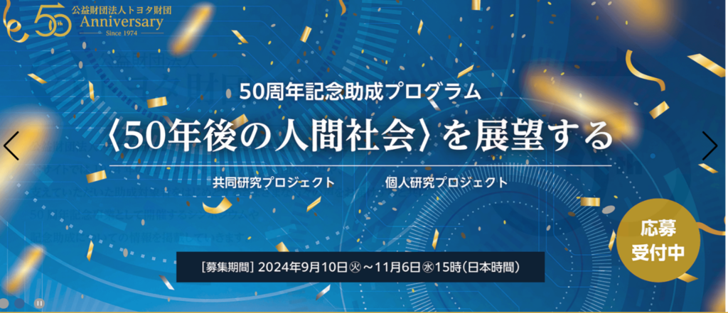【助成金情報】50周年記念助成プログラム(トヨタ財団)