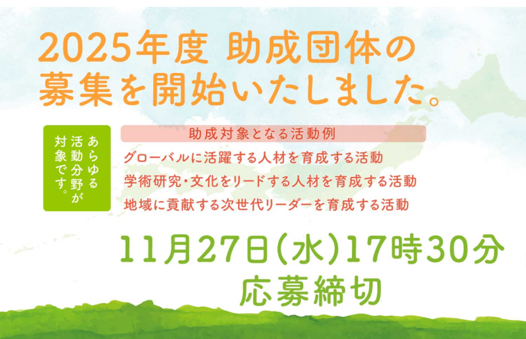 【助成金情報】2025年度 学生を対象とする 次世代リーダー人材育成活動助成