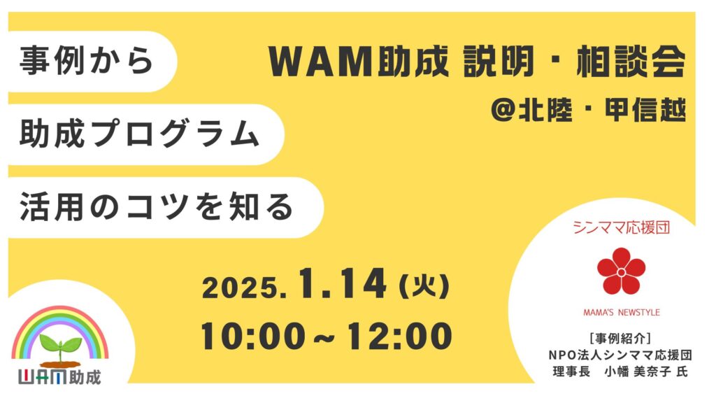 【助成金情報】WAM助成事業オンライン説明会(北陸エリア)