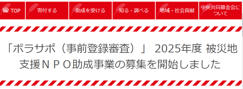 【助成金情報】「ボラサポ(事前登録審査)」 2025年度 被災地支援NPO助成事業