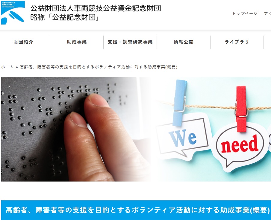 公益財団法人車両競技公益資金記念財団は、高齢者と障害を持つ人たちに対する、社会福祉のボランティア活動を積極的に支援推進し、心豊かな社会づくりの実現に寄与することを目的に、令和5年度「高齢者、障害者等の支援を目的とするボランティア活動に対... -