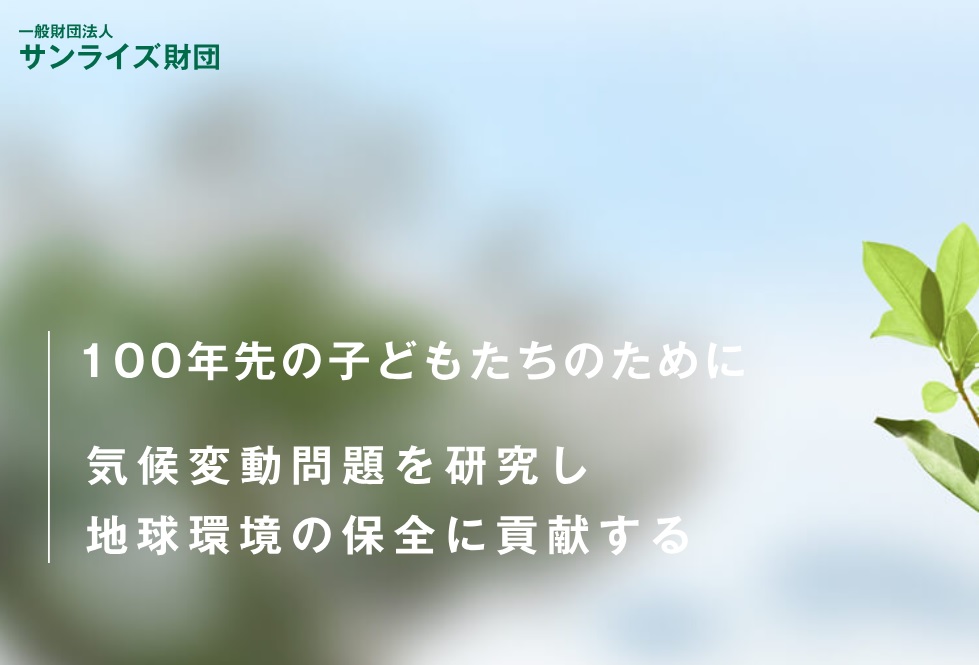 一般財団法人サンライズ財団は、次世代のために、気候変動問題の解決と地球環境の保全に貢献することを目的として、環境助成金を通じて気候変動問題に関する研究や対策を始め、脱炭素社会の構築、地域に根付いた環境保全など、様々な形の環境への取り組み... -