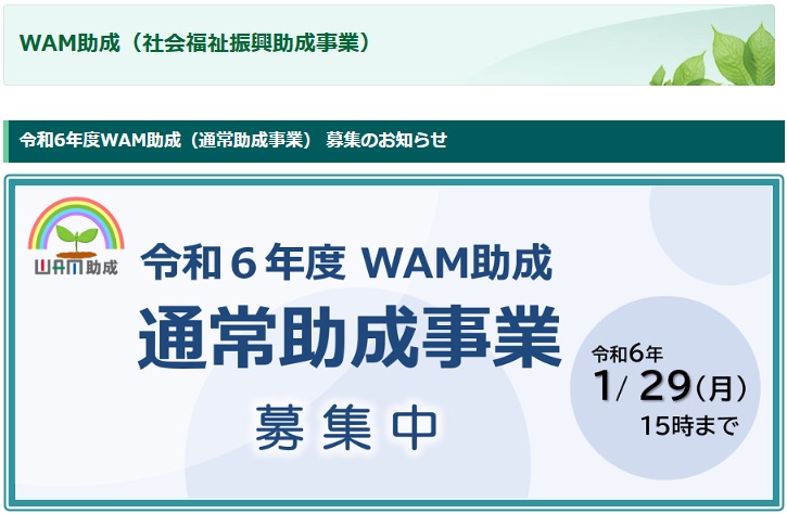 WAM(独立行政法人福祉医療機構)は、「令和6年度WAM助成(通常助成事業)」と「令和6年度WAM助成(モデル事業)」、「令和5年度WAM助成(補正予算事業)」をそれぞれ募集しています。 ◇助成の対象となる団体:社会福祉の振興に寄与する事業を行う、営利を... -