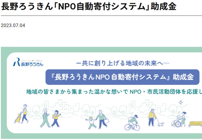 【助成金情報】「長野ろうきんNPO自動寄付システム助成金」助成先募集