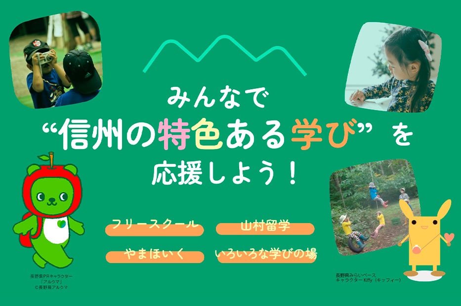公益財団法人長野県みらい基金は、長野県と協働し、「やまほいく」や「山村留学」、「フリースクール」、「いろいろな学びの場」など信州の特色ある学びへの支援を行い、子どもたちが主体的に学び続けられる環境づくりを進めるため、信州の特色ある学びを... -