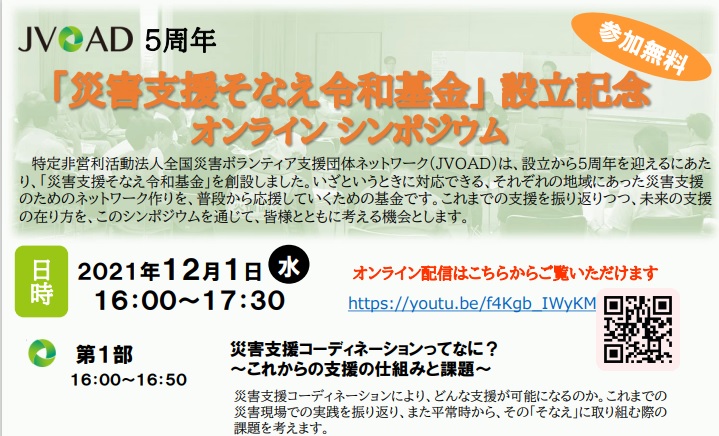 【催し案内】「災害支援そなえ令和基金」設立記念オンライン・シンポジウム