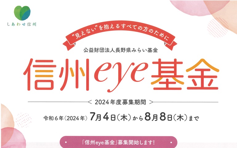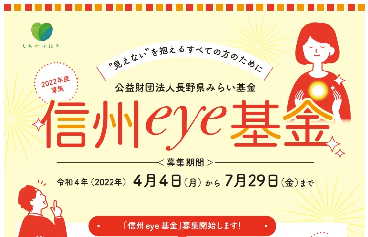 【助成金情報】信州eye基金 “見えない”を抱える方へ