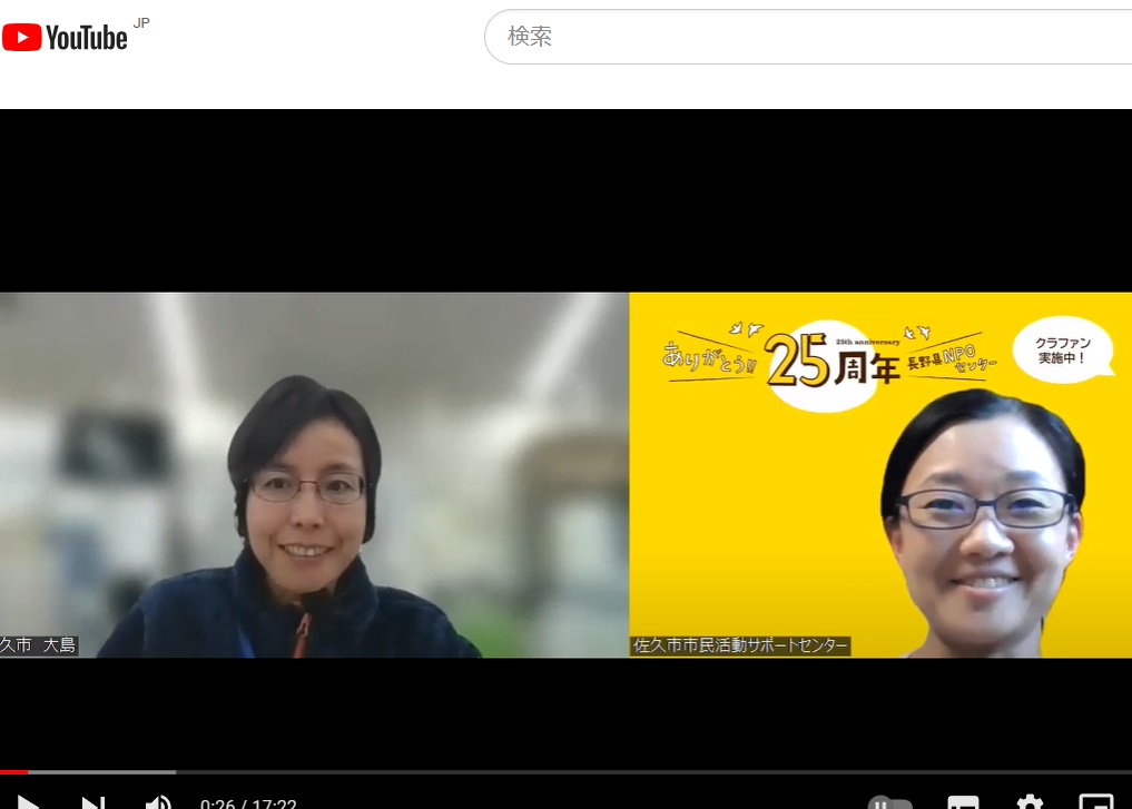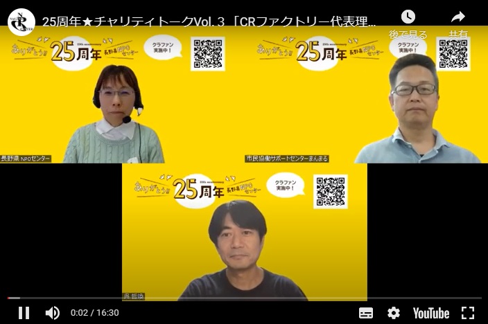 長野県NPOセンターは設立25周年を迎えるにあたり、認定NPO法人の取得を目指してバースデードネーションに挑戦中です。 当法人と関係の深い方々と、当法人との出会いや今後期待することをお聞きするチャリティトーク。今回のゲストは、佐久市企画部広報広聴... -